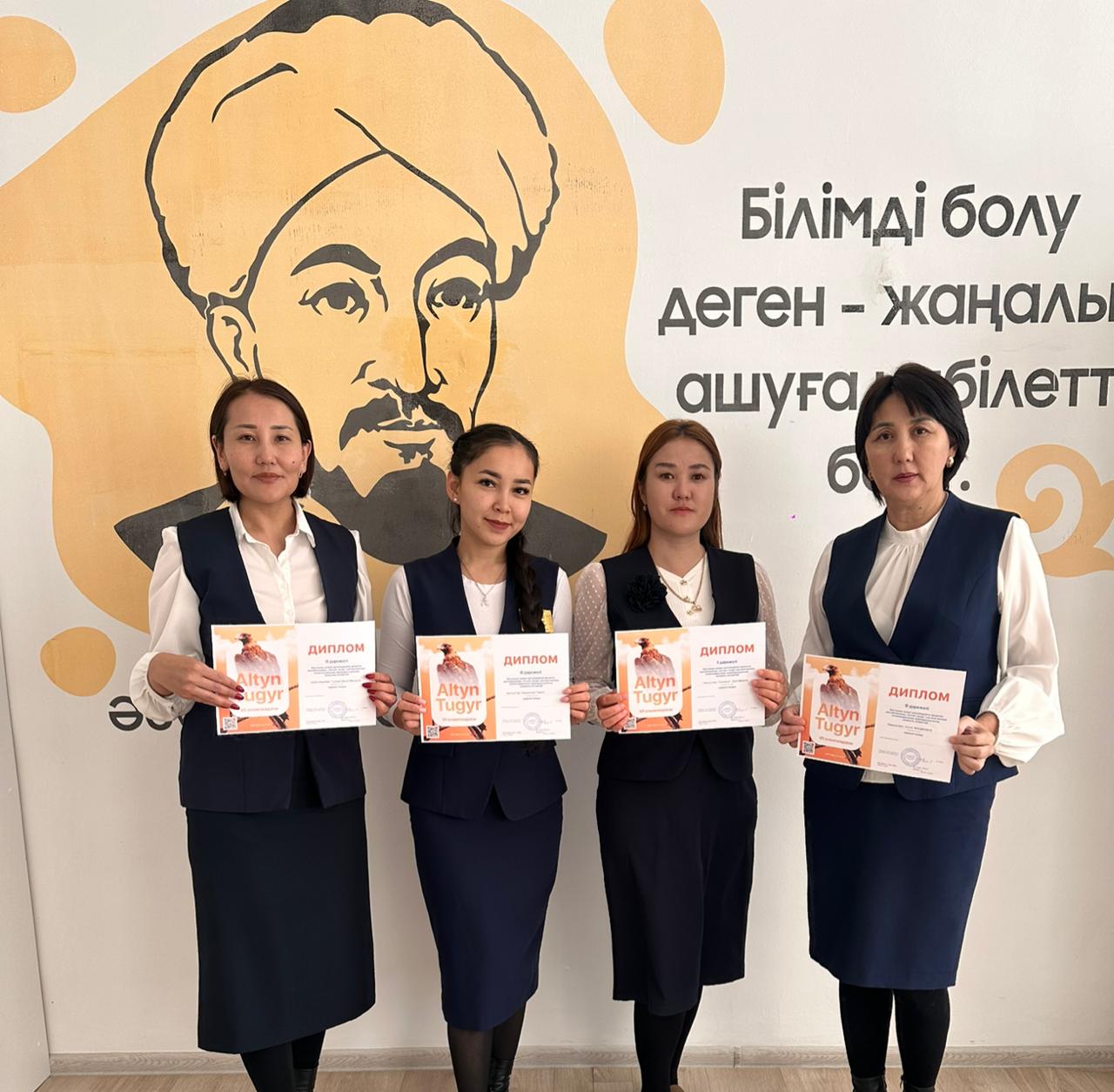31.10.2025 Қалалық білім бөлімінің ұйымдастыруымен №4 мектеп базасында математика пәнінен бастауыш сынып мұғалімдеріне арналған республикалық "Алтын тұғыр" олимпиадасының қалалық кезеңі өткізілді. Олимпиадаға 61 мұғалім қатысты.Біздің мектеп-гимназиямыздан 5 мұғалім қатысып, 4 ұстазымыз жүлделі орындарға ие болды. Сейдахова Г.Ш. ІІ орын, Шайкамалова Г.Б. , Қапсұлтан Т.Т., Бажыканова С.А. ІІІ орын иегерлері. ІІ орын иегері Сейдахова Г.Ш. облысқа жолдама алды. Жеңістеріңіз құтты болсын!