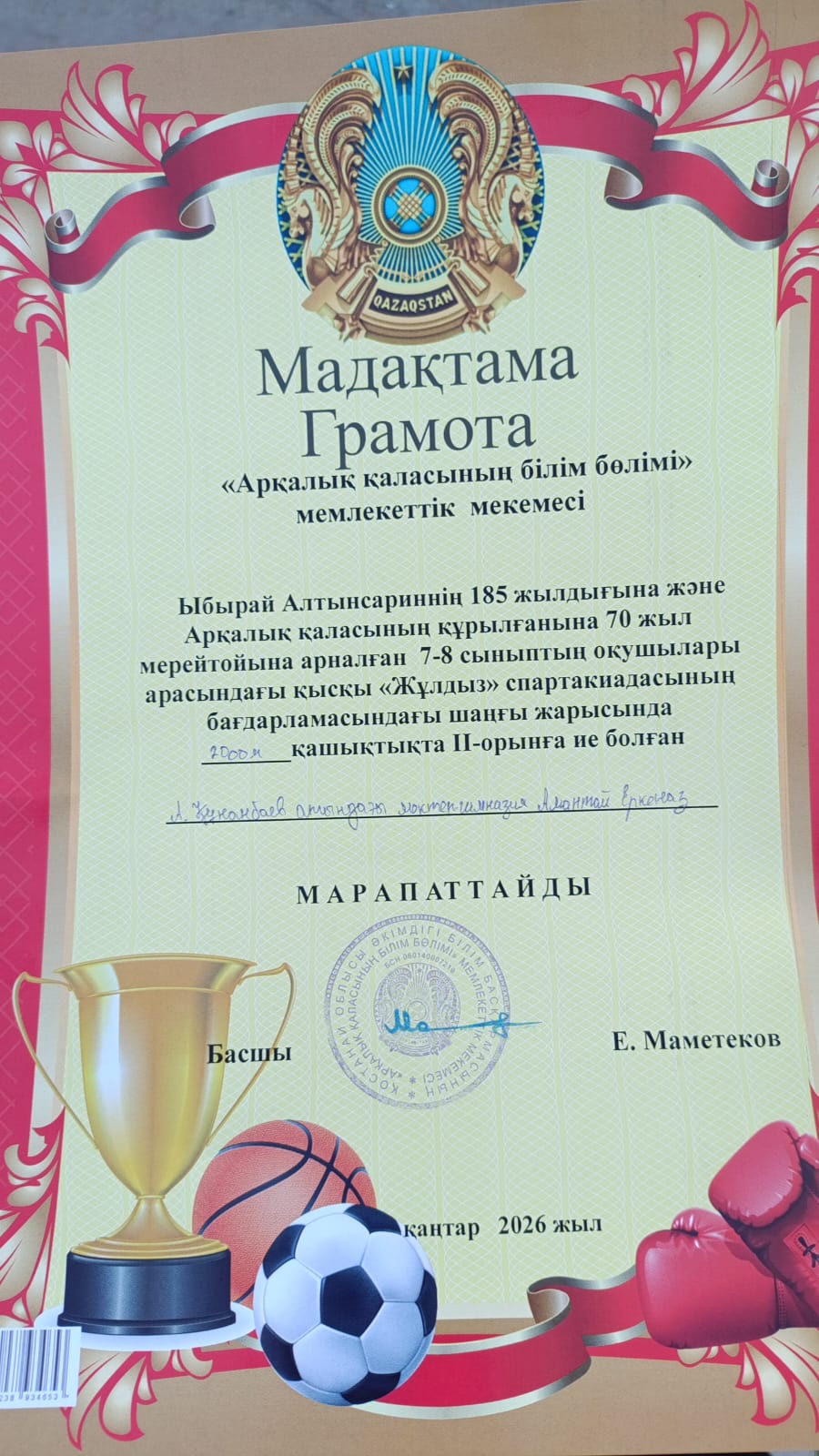 Ыбырай Алтынсариннің 185 жылдығына және Арқалық қаласының құрылғанына 70 жыл толуына арналған 7–8 сынып оқушылары арасында өткен қалалық қысқы «Жұлдыз» спартакиадасы аясындағы шаңғы жарысында