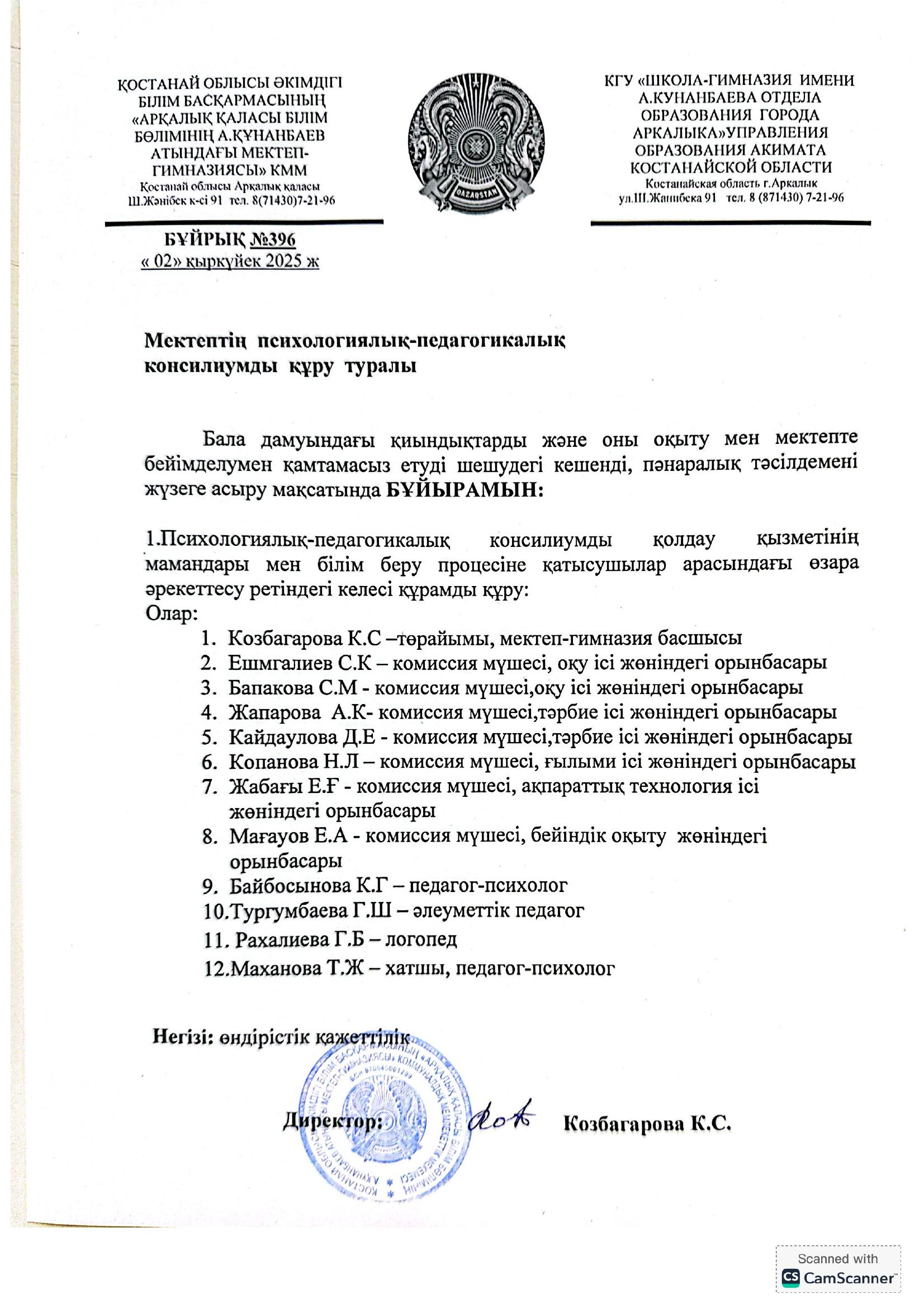 - Білім беру ұйымында Консилиумды құру туралы бұйрық (1 Қосымша).